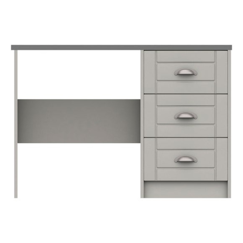 The Darwin dressing table boasts a timeless design that would suit any bedroom dcor. This dresser features three spacious drawers with distinctive routed fronts, complete with stylish metal cup handles and linen-look drawer liners.Please note, unfortunatel