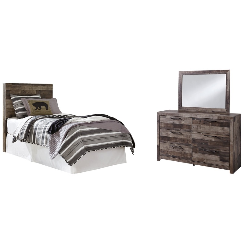 Derekson Twin Panel Headboard Bed with Mirrored Dresser