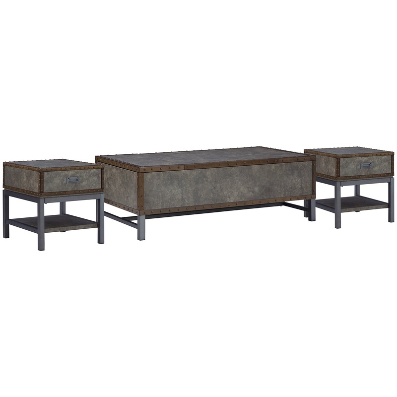 Reinvented for the here and now, this occasional table package rocks vintage industrial design with a traditional vibe. Its metal accent trim and bronze-tone metal base frame are ready to embrace the modern demands of everyday life.