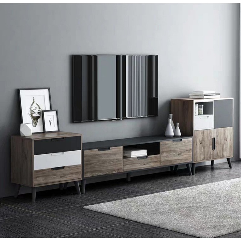 The centrepiece of your living area plays a crucial part in making an impression to guests and family. Crafted from durable MDF wood with a dark red oak laminate and grey panels, this design comes with three wide drawers and an open shelf for your media accessories and entertainment units. Build your home theatre with this masculine and clean design and complete the look with a gunmetal grey sofa set.