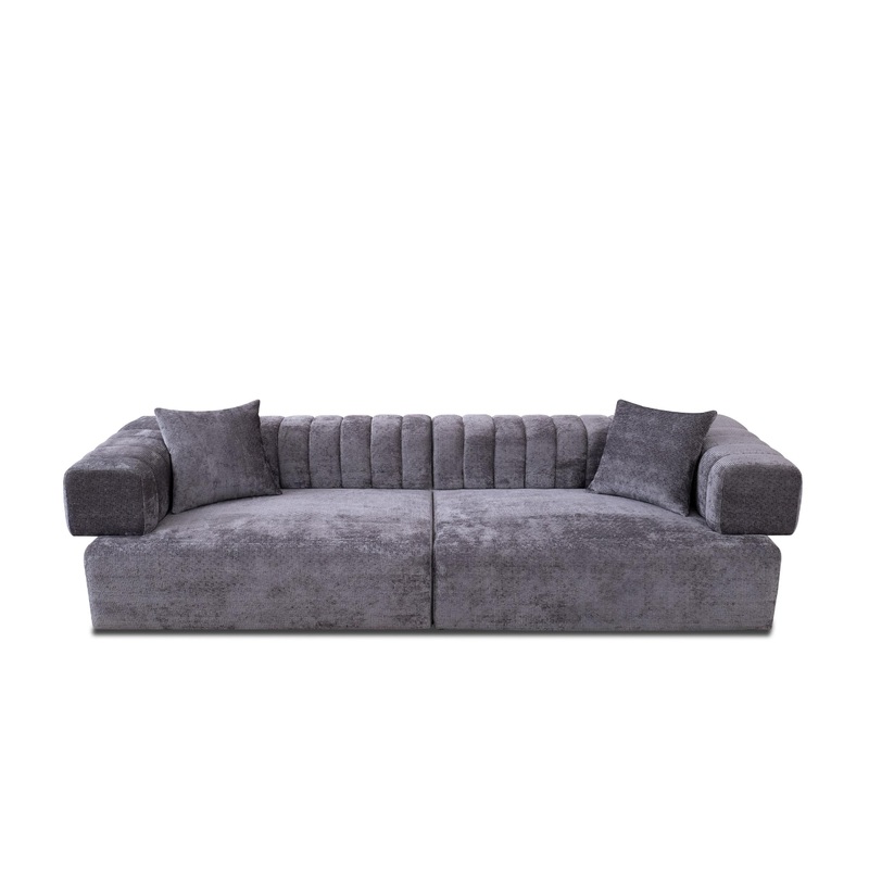 Upholstered 4-Seater Sofa Includes: 1 RAF Armed Seat & 1 LAF Armed Seat Upholstered In 100% Polyester Fabric Seats Up to 4 Color: Medium Grey YG-9 Plastic Legs Solid + Manufactured Wood Frame Wood Species: Pine Seat Fill Material: Foam Sinuous Spring Suspe