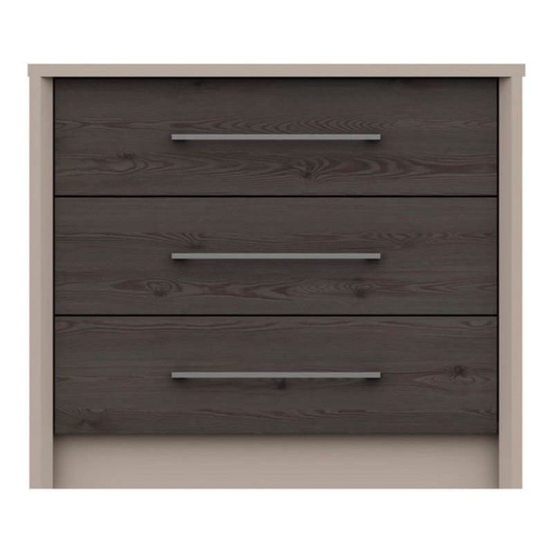 Crafted with a coloured carcass with complementing oak effect drawer fronts, the Dolan 3 Chest of Drawers would make a stylish addition to any bedroom. This modern chest of drawers features five spacious drawers complete with stylish brushed pewter finished slim handles, linen-look drawer insides, 8mm heavy duty bases and easy glide runners for ease of use.