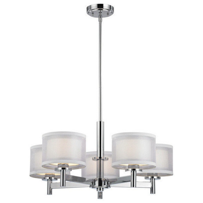 No. of Rods: 4 Canopy Included: Yes Shade Included: Yes Canopy Diameter: 1.13 x 5< Rod Length(s): 12.00Five Light Chandelier Chrome Double Organza Fabric Shade *UL Approved: YES *Energy Star Qualified: n/a *ADA Certified: n/a *Number of Lights: Lamp: 5-*Wa