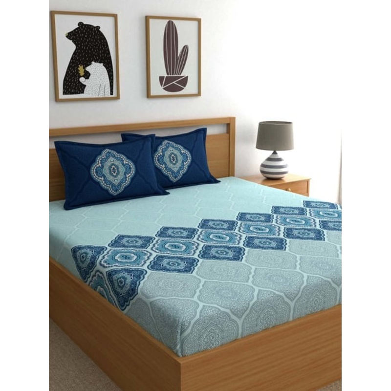 Dreamscape Teal Blue Cotton 144 TC King Bedsheet with 2 Pillow Covers