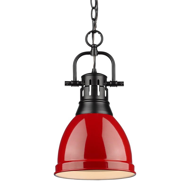 The Duncan collection is contemporary style with an industrial feel. The collection features a variety of simple, traditional silhouettes that are a nod to a bygone era. Transform the look of your room with these classic, vintage-inspired fixtures. A variety of plated and painted metal shade finishes are offered in choice combinations. This small, chain-hung pendant features a may be hung individually or grouped over a bar.