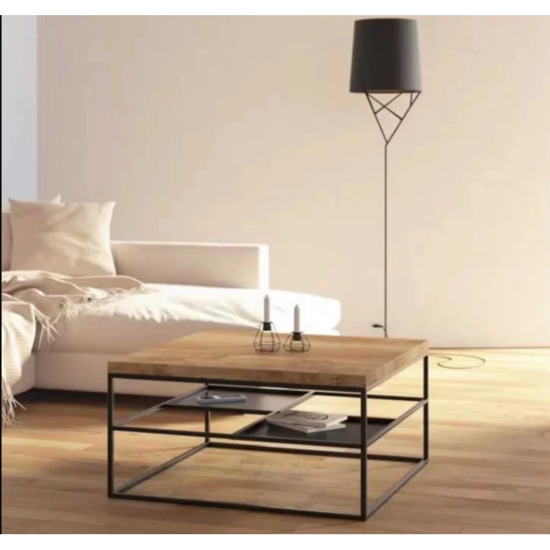 Minimalism meets function in this solid wood and metal combination. Rustic golden walnut wood is supported by an ultra slim powdercoated steel frame, with layers of metal trays for your storage needs. We support full customization of size and wood stain. D