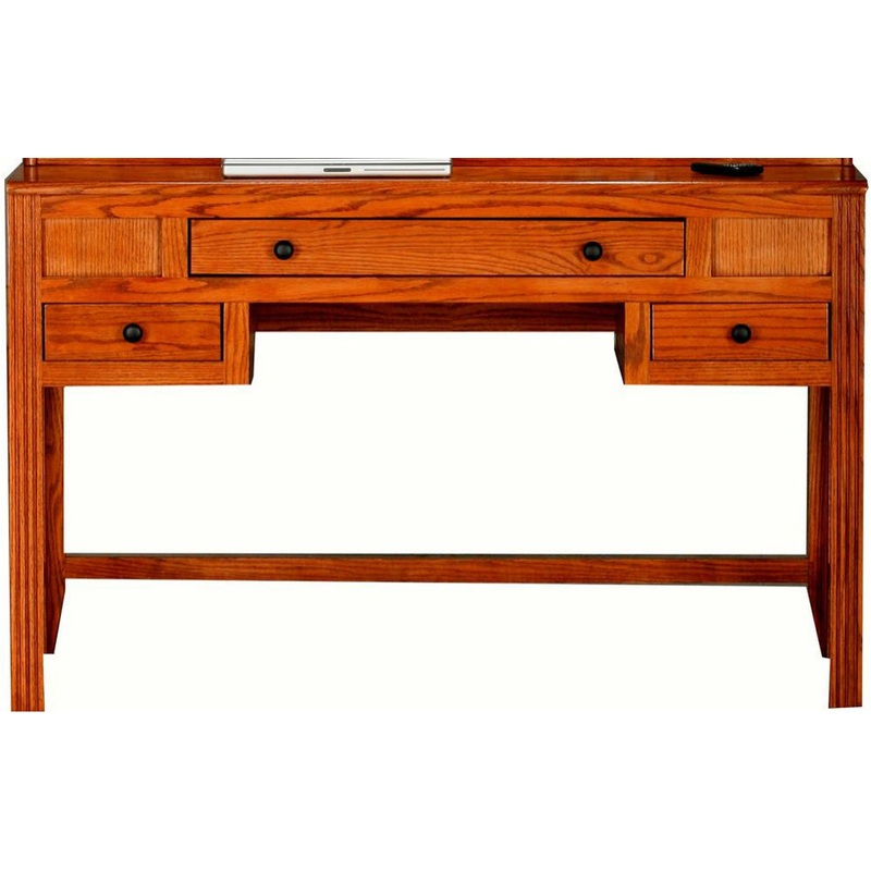Finish: Dark Oak. One Keyboard/Pencil Drawer combo. Two drawers. straight leg base. Designed with fluted detailing and finished back. Warranty: Eagle's products are guaranteed against material defects for one year from date of delivery to the dealer. Made