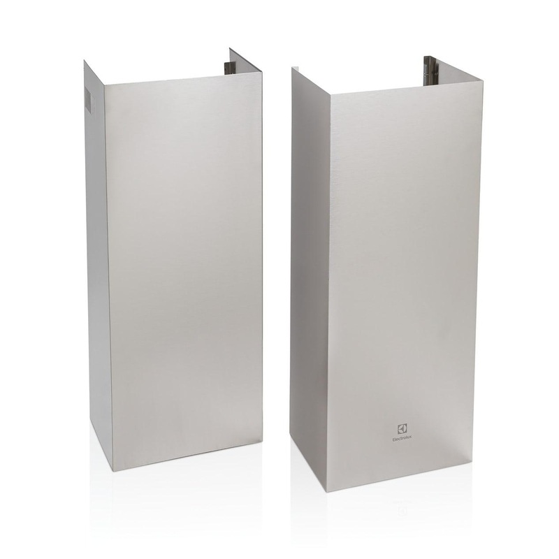 Create a customized fit for your range hood with the Electrolux Wall-Mount T Shape Hood 12′ Chimney Kit. This includes two flues for either a ducted or non-ducted 12-foot ceiling (installations between 120 to 144 inches), providing a seamless range hood fit to your home. The extension should replace the top and bottom flues included with the 30″ or 36″ Electrolux Wall-Mount T Shape Hood and features a premium stainless steel finish.