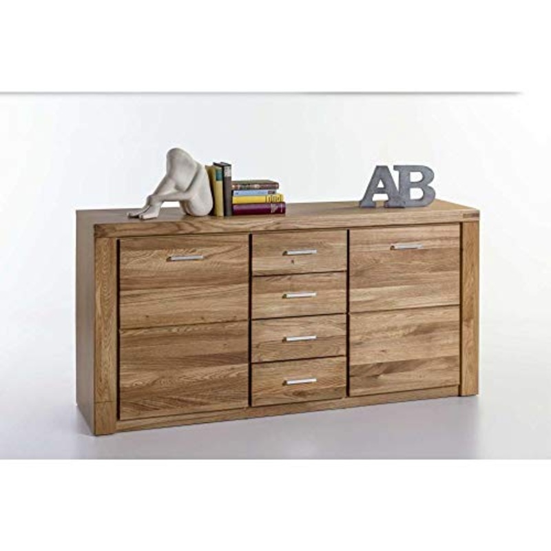 Marca: ElfoCaratteristiche: Credenza Lea in rovere selvatico oliato parzialmente massiccioLarghezza: 159 cm, altezza: 82 cm, profondit: 40 cmCredenza con 2 ante esterne, 4 cassetti al centroParte frontale in rovere massiccio oliato con lamelle continue. Co