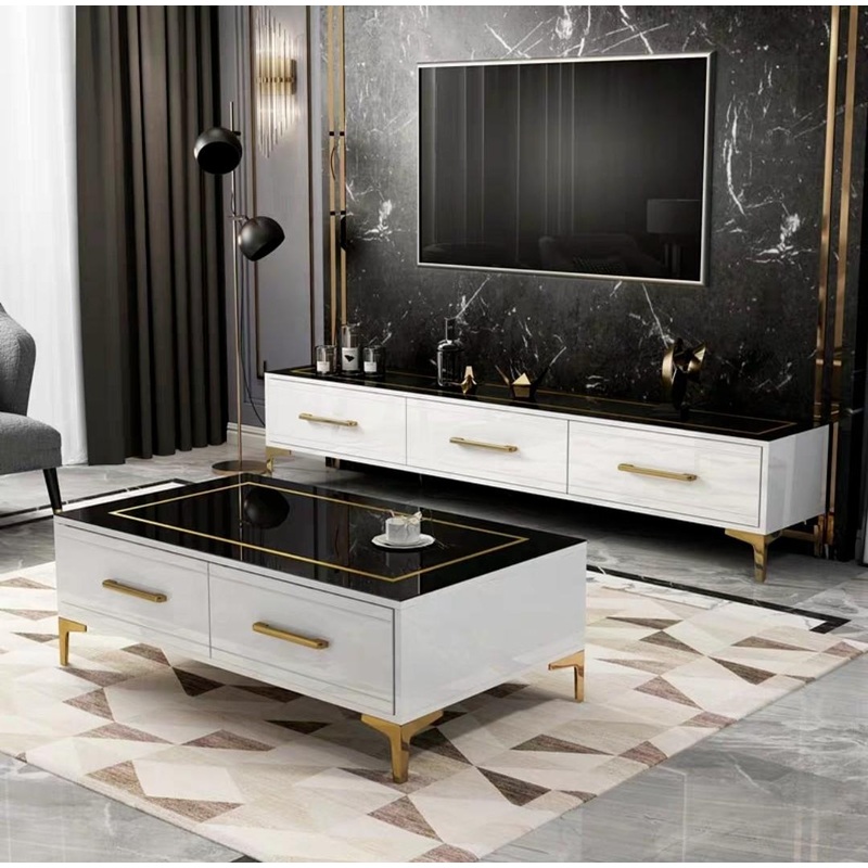 The TV console and coffee table are the centrepieces of your living room, their style sets the theme of your interior. With a modern twist on the Victorian style, this beautiful glossy white set will raise the bar for luxury in your home. Colours: White to