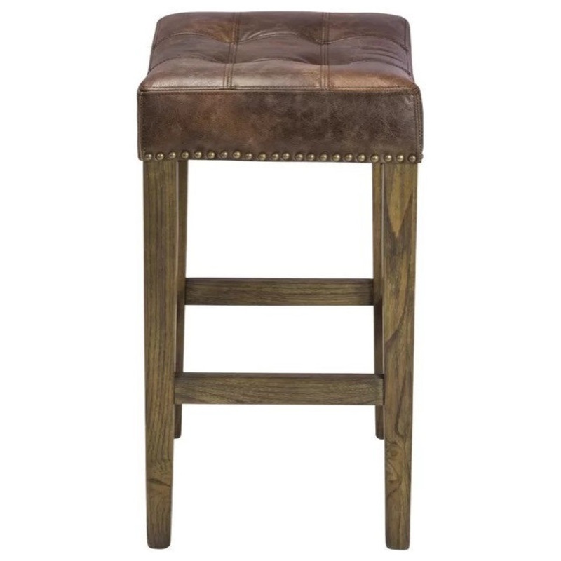 Modern counter stool with tufted seat and nailhead trim. Designed for residential and commercial use, you can place it in your kitchen, bar or dining room and give it the touch of style you need.