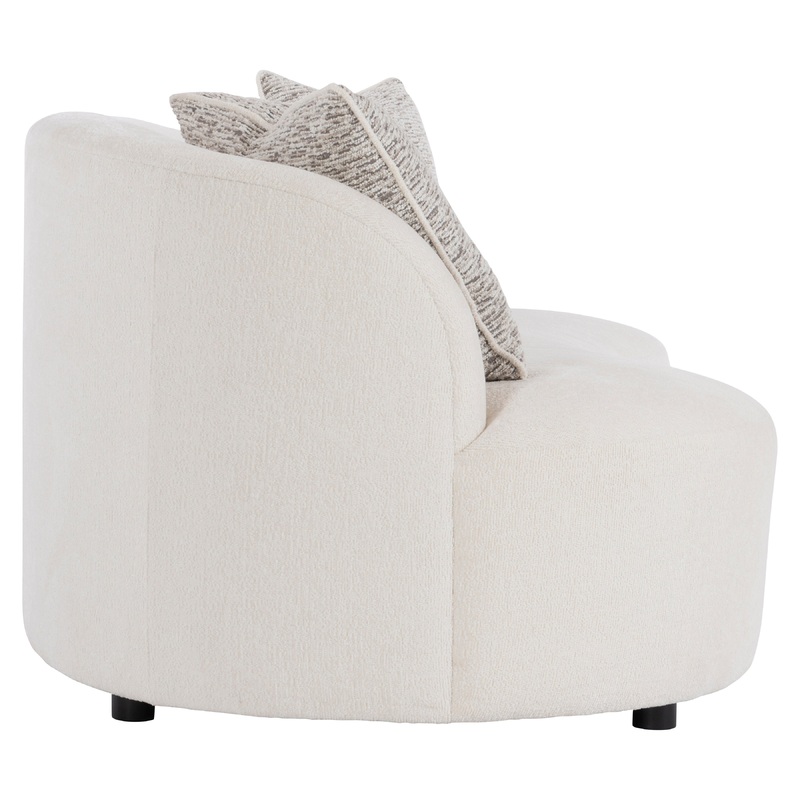 Sinuous curves and luxurious upholstery give the Elle sofa a cloud-like softness. Inspired by a traditional kidney-shaped design, the encircling back sweeps around to create a sheltering effect. The seat flows to the floor, allowing just a peek at the four feet.
