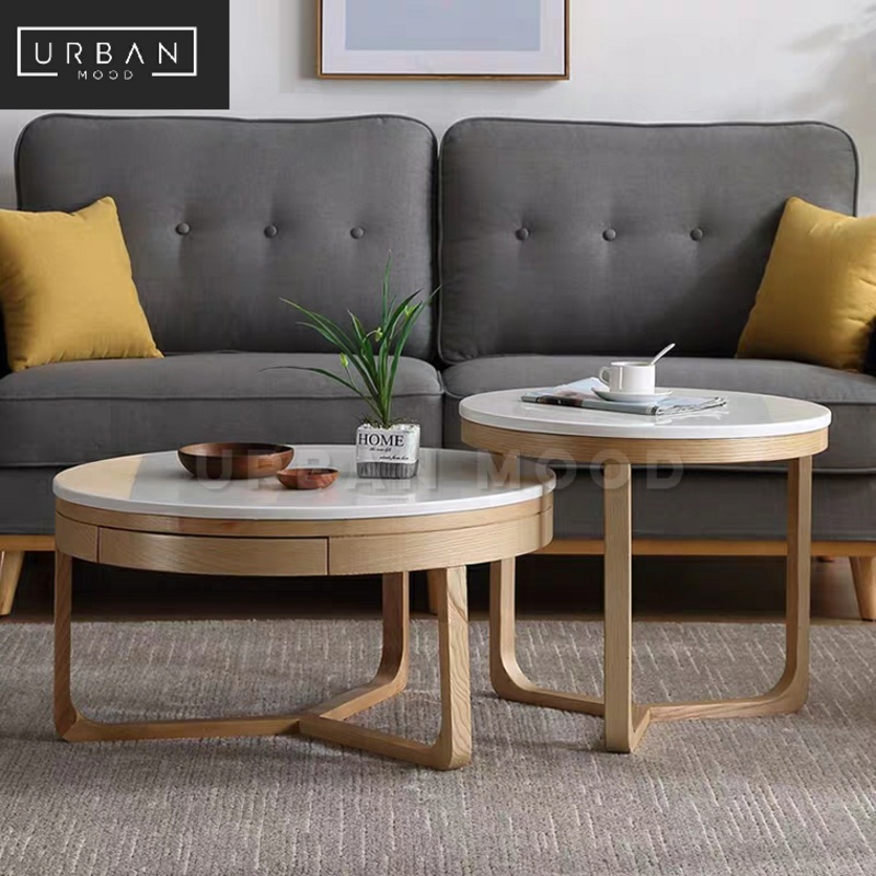 Dimensions (cm): Small 60L x 60H Large 80L x 50H Small + Large Materials: Engineered marble Oak woodInterior themes: Modern/Contemporary Minimalist Scandinavian Rustic Farmhouse Cottage Oriental