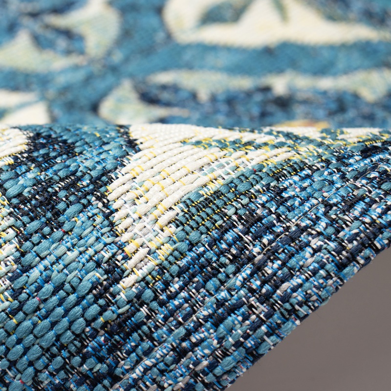 The Madrid decorative traditional geometric mat is designed with a deep blue flower tile centered in a white background and aqua diamonds. Made in Egypt from 75% polypropylene/25% polyester, reinforced with a latex non-skid backing, the performance Esencia Collection is Power Loomed to create intricate designs with a broad color spectrum and a high-quality finish. The material is flatwoven, low profile, durable, weather resistant, machine washable, UV stabilized for enhanced fade resistance, durable and ideal for those high traffic areas such as your patio, deck, sunroom, kitchen, bathroom, entryway, hallway, living room and bedroom making this the ideal indoor or outdoor rug. Detailed patterns are offered in an eclectic mix of styles ranging from tropical, coastal, geometric, novelty, contemporary and traditional designs; making these perfect accent rugs for your home. Limiting exposure to rain, moisture and direct sun will prolong mat life. Machine wash cold, gentle cycle with mild detergent. Do not bleach. Lay flat to dry. Vacuum clean. Do not use a hard bristle brush.