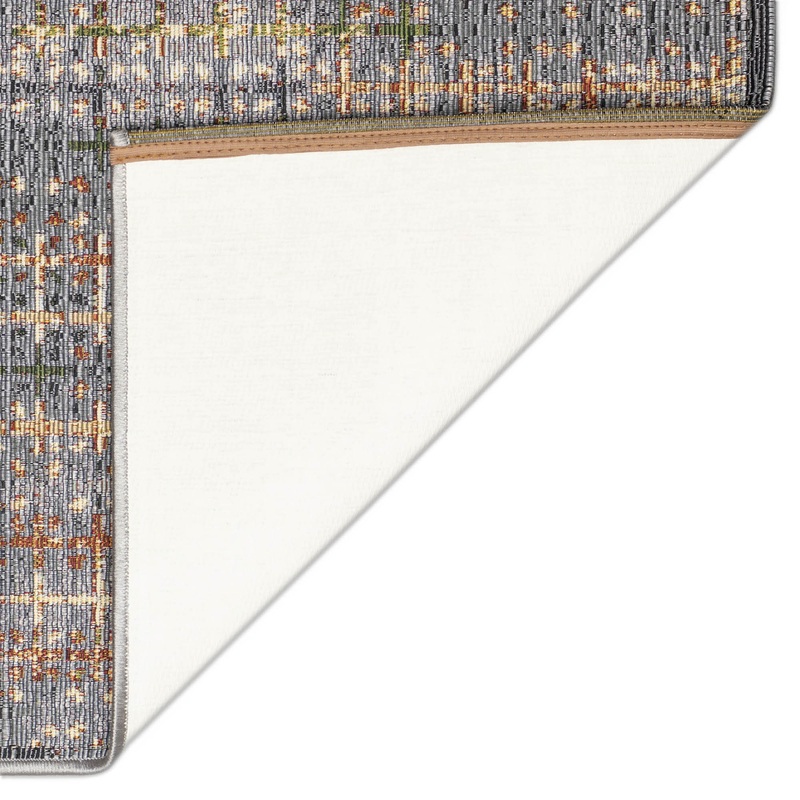 This Sienna decorative transitional contemporary mat is truly the perfect everywhere piece that will complement nearly every decor style. Featuring a geometric crosshatch pattern in black with neutral and rust accents which is highlighted by the rich, text