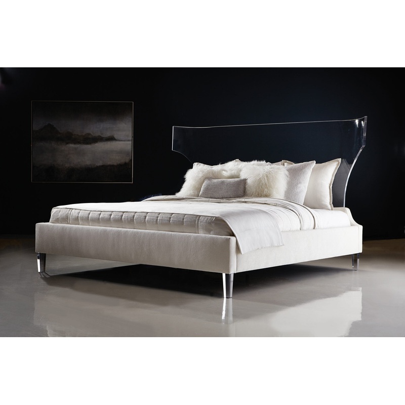 Upholstered footboard and rails. Two pairs of acrylic legs. Upholstered footboard and side rails. Three slat support system with adjustable center supports. Available in King size only.