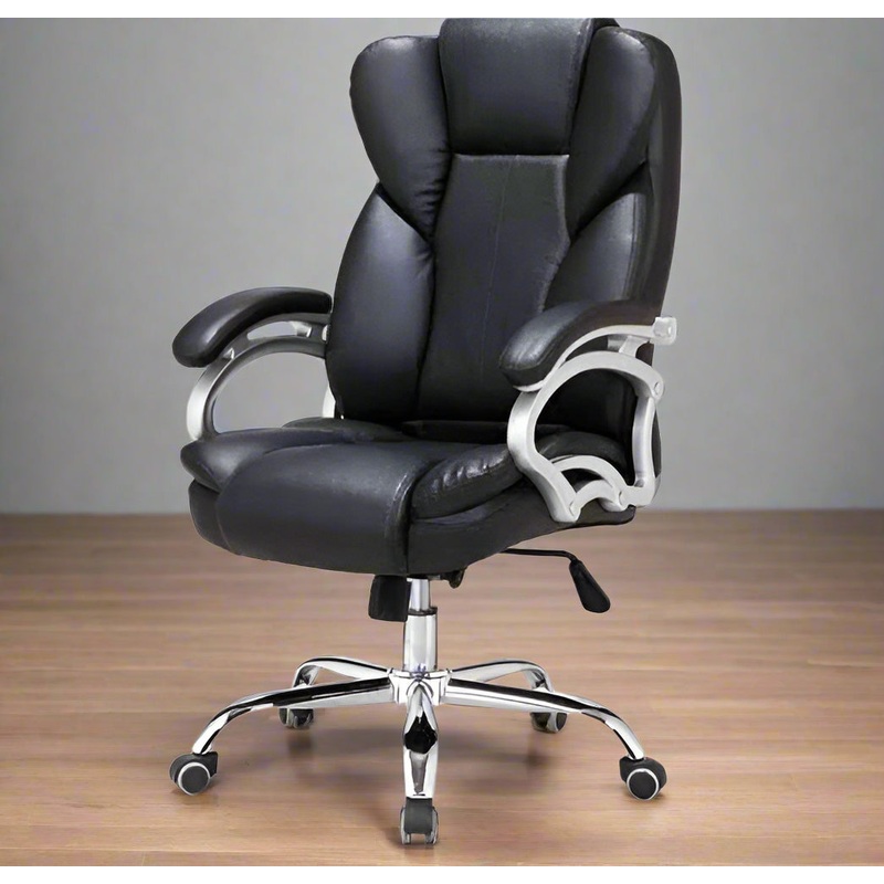 Features:easy to assembleheight can be adjusted.Swivel base for easy movement and multitasking.Cushioned back provides lumbar support.Curved armrests offer relaxed sitting posture.Flat Square style base suitable for fixed seating.