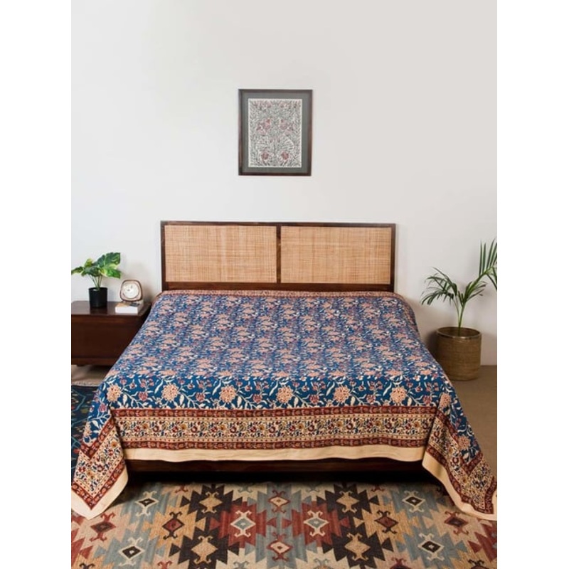 Fabindia Home Blue Cotton 118 TC Hand Block Printed Single Bed Cover