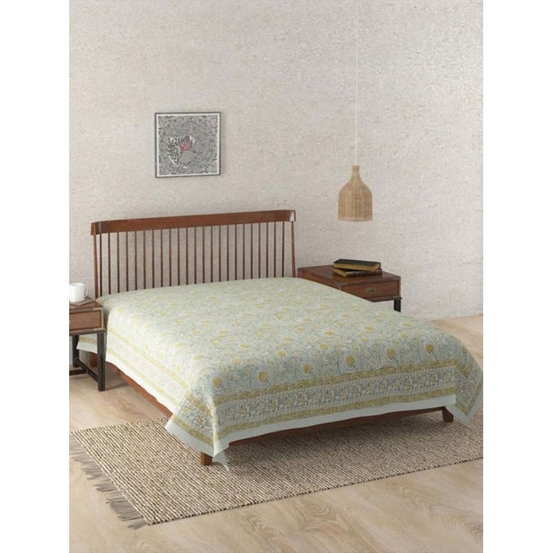 Fabindia Home Ihania Green Cotton 116 TC Single Bed Cover
