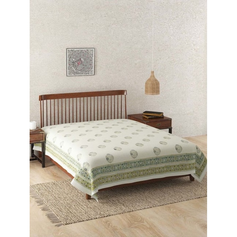 Fabindia Home Krisha Green Cotton 116 TC Single Bed Cover