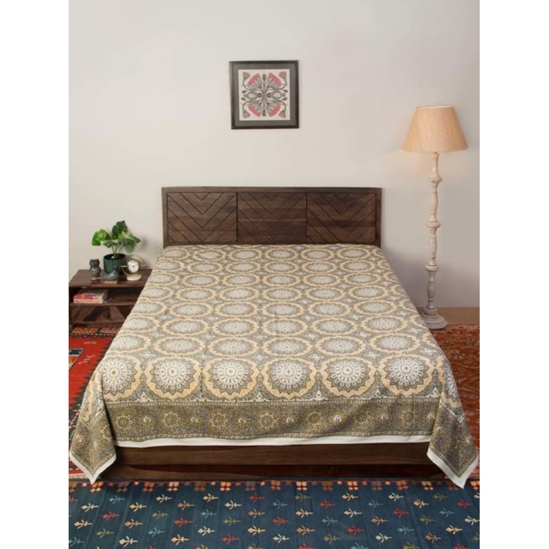 Fabindia Home Standalone Grey Cotton 118 TC Hand Block Printed Queen Bed Cover
