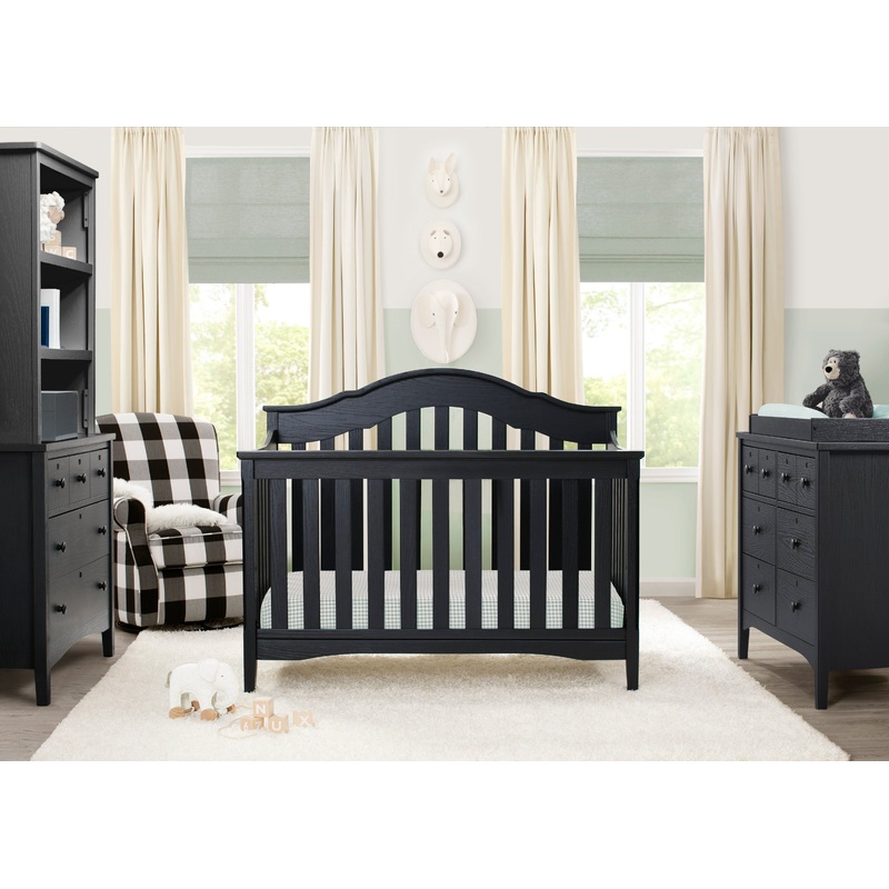 The elegant curves of the Farmhouse 6-in-1 Crib are brought to life with a lightly textured finish. A great option for your babys nursery, this convertible crib features a grow-with-me design that converts from a crib, to a toddler bed, daybed, full size b