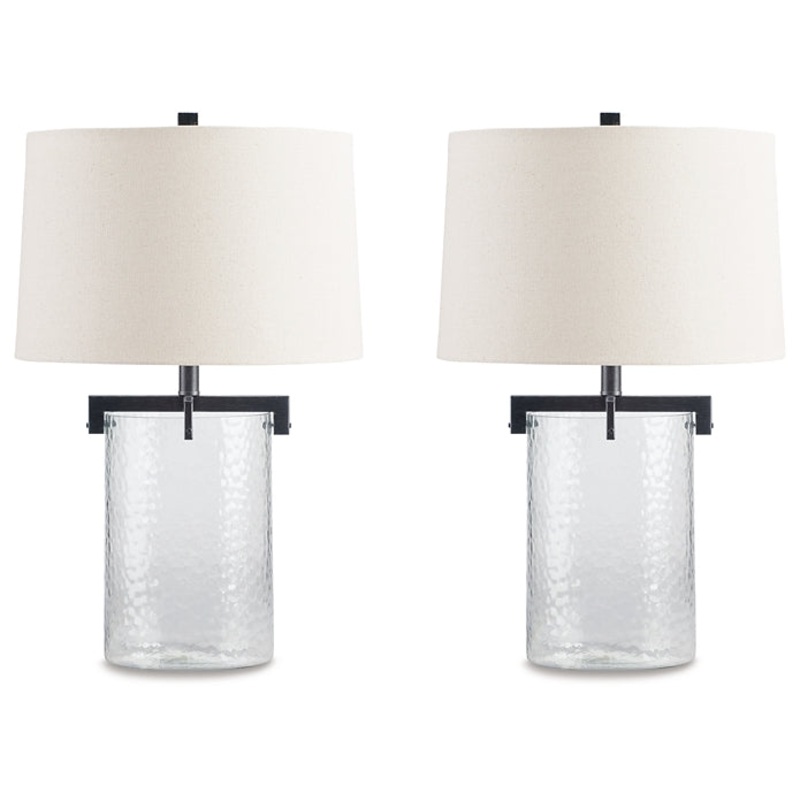 Inspired by master glass artisans, this unique table lamp set is designed to highlight its quality materials. Crafted with clear, artistically textured glass with classic antiqued black metal detailing, this stunning lamp set adds an elegant touch to any room.