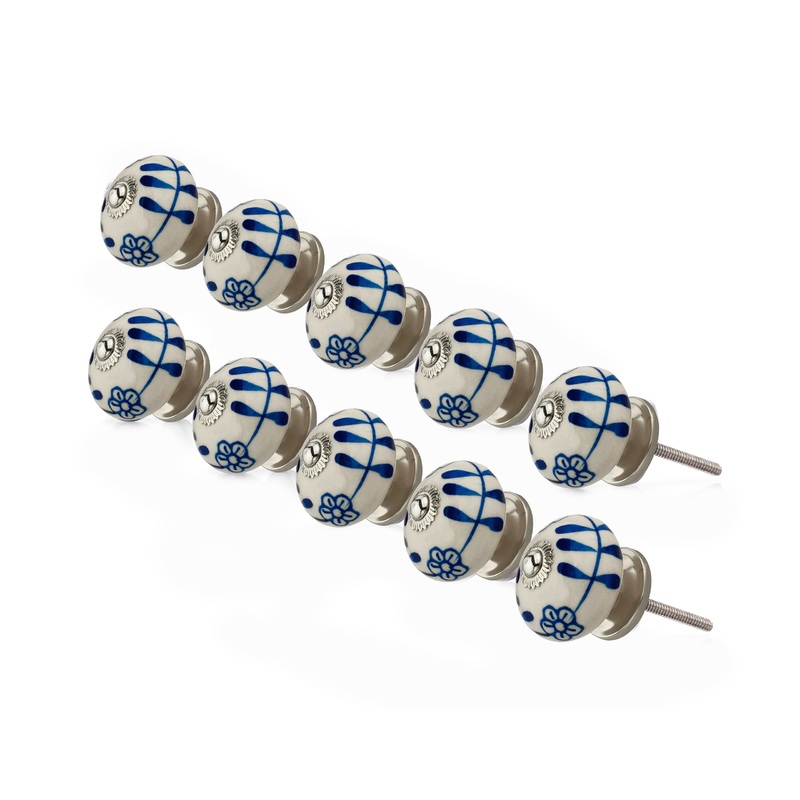 Mascot Hardware Flowered Elegant 1-3/5 in. (41mm) Blue & Cream Cabinet Knob adds a unique touch on a cabinet or drawer in your rustic home. This cabinet knob will help a stylish and complete look for your cabinet, drawer, bin, dresser, etc. You can install it by drill a hole in drawer and tighten the nuts. All hardware is included with knobs. Cut the extra screw length once fitted.