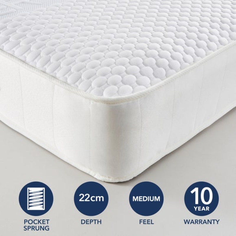 1000 pocket springs which respond individually to movement and prevent any sleep disturbancesSingle sided useRecycled polyester materials used1 inch cool memory foam which moulds to the body's shape and allows temperature to be regulatedVents to allow brea