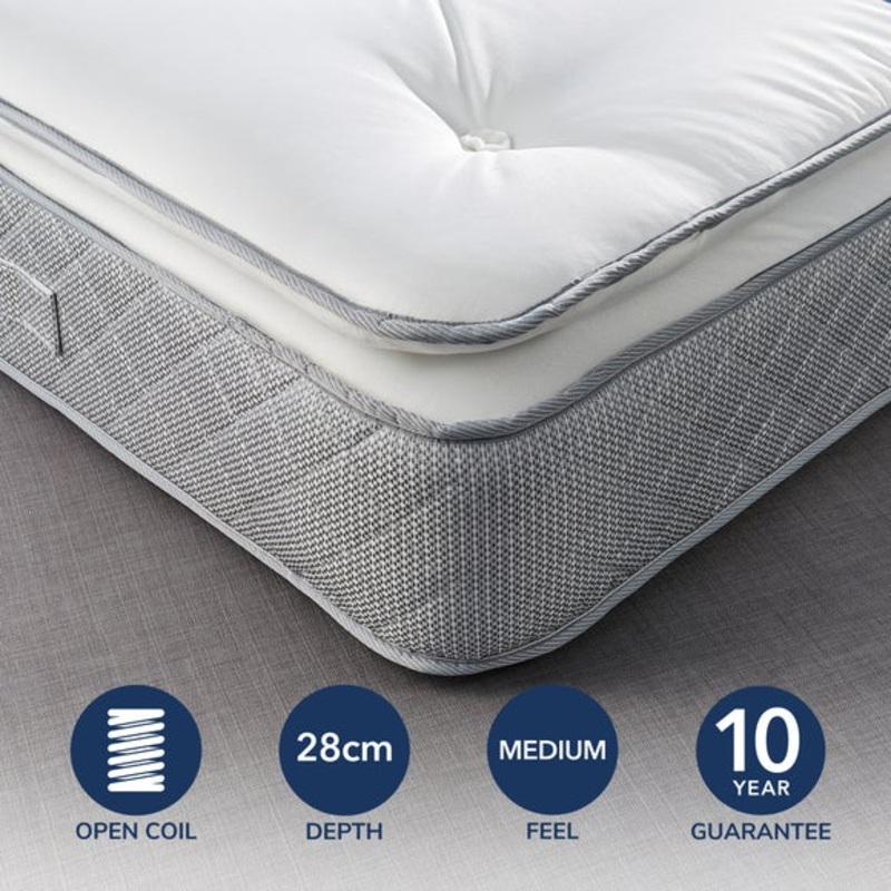 Get your beauty sleep with our Fogarty pillow top open coil mattress. Providing consistent support, this mattress has a traditional open coil design that moves with your body whilst you sleep. Offering medium-firm support with orthopaedic properties, this mattress aids natural spine alignment and support making it perfect for back and front sleepers. It is complete with a pillow top for additional cushioning for a perfectly restful nights sleep.