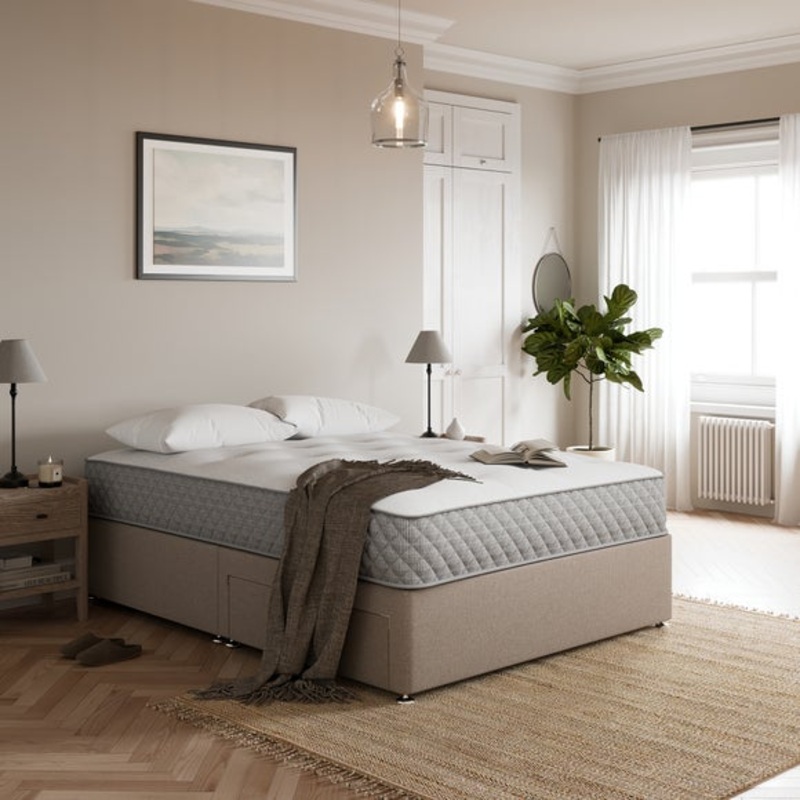Fogarty Open Coil Memory Foam Mattress Divan Set, Faux Linen (Super Kingsize 6ft)
