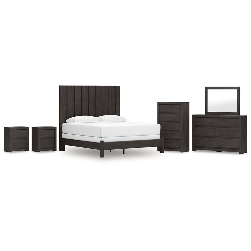 Find serene simplicity in the clean lines and dark neutral tones of this bedroom package. Its a sincere approach to modern elegance, giving you high style at a great value. A sleek hardware-less design creates a fuss-free look. Short on storage? Smooth-gliding drawers keep clothes and clutter neatly tucked away.