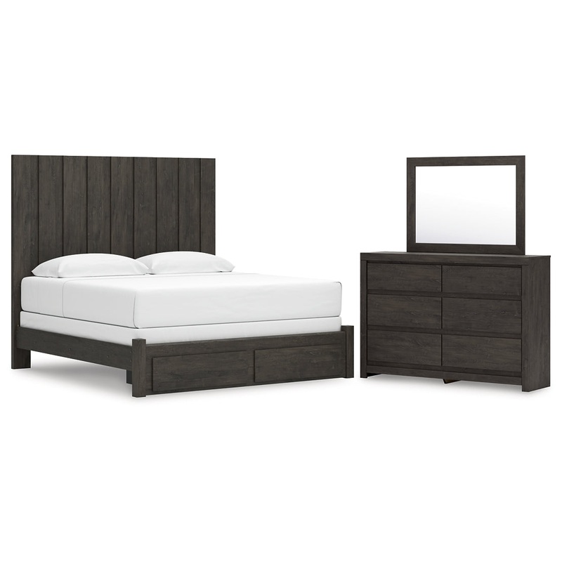 Fraluna King Panel Storage Bed with Mirrored Dresser