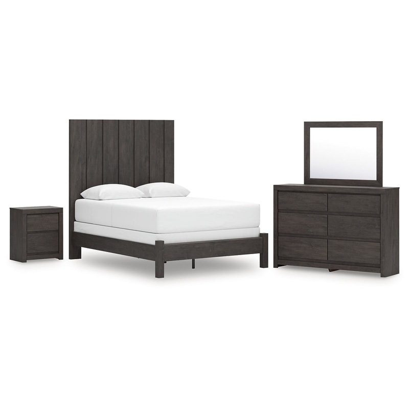 Find serene simplicity in the clean lines and dark neutral tones of this bedroom package. Its a sincere approach to modern elegance, giving you high style at a great value. A sleek hardware-less design creates a fuss-free look. Short on storage? Smooth-gliding drawers keep clothes and clutter neatly tucked away.