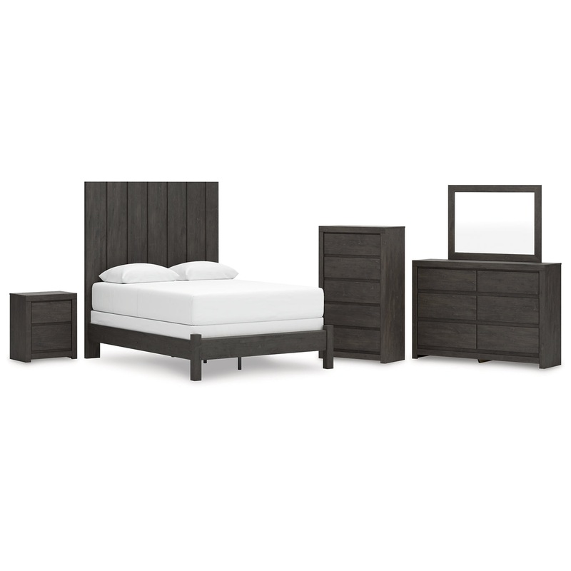 Fraluna Queen Panel Bed with Mirrored Dresser, Chest and Nightstand