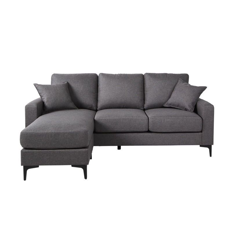 Cushion: Linen Fabric L-Shape 3 Seater Sofa (Removeable Pillow and Seater Cover)Leg: Metal Leg (13cm Height)Design: Can be changed the chaise to the left or right in minutesSoftness Level: ModerateColors: Grey / Clay / BlueProduct Dimension: L190cm x W137c