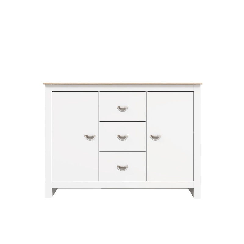 ** - ()**SimplemoderndesignColour:White+NaturalOak/Grey+NaturalOakFeatures:-Material:ParticleBoardwith3DPUpaperHandleType:Half-MoonMetalHandle3Drawersand2StorageCabinetsSuitableforLivingRoomandBedroomWhite+NaturalOak:-ProductDimension:L118.5xW40xH86.5cmDra