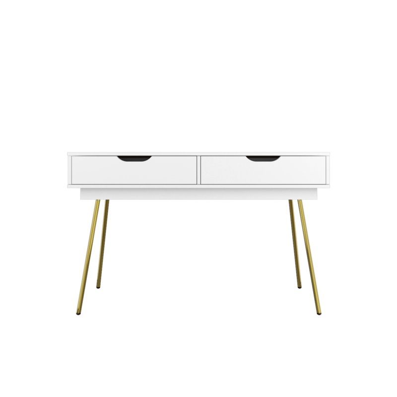 [Free Installation] 4FT Ivory Series Console Table with 2 Drawer Storage Gold Metal Leg Support – HMZ-FN-CT-1415-WT