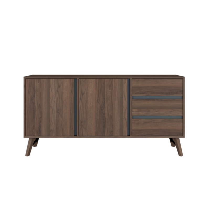 Material: Particle Board with 3D PU paperWooden Leg Frame with Metal Leg SupportExtra Metal SupportSuitable for Living Room and BedroomExtraordinary WoodgrainDisplay Cabinet with 3 Drawers, 2 Doors and ShelvesProduct Dimension: L150 x W40 x H74.4 cmDeliver