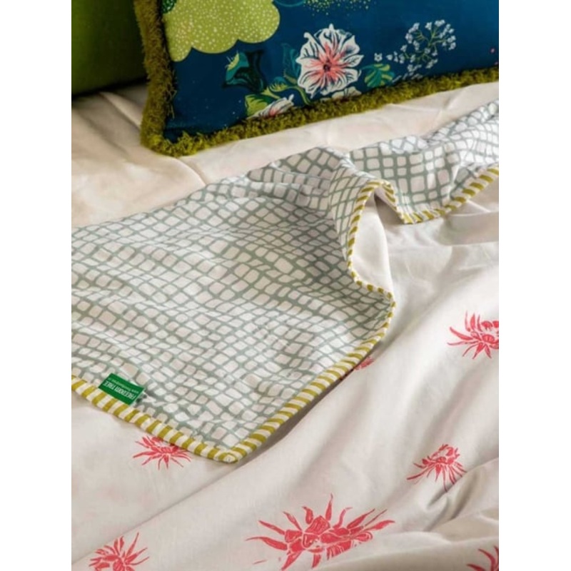 The Bhramakamal Dohar hosts a cluster of delicate, screenprinted blooms with star-like petals on fabric. Like a joyous shower of starry flowers in line for the festive part of the year. Lined with a luxuriously warm flannel fabric, this dohar will keep you warmed up for the chilly nights to come.