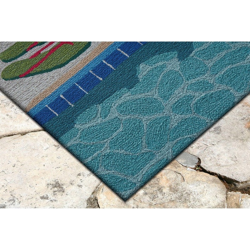Our Poolside rug adds a splash of color to any indoor or outdoor living space. The perfect poolside accessory. Hand hooked of weather-resistant fiber, this collection is a blend of comfort, softness and durability. Frontporch is remarkably easy to clean and treated for added fade resistance. Limiting exposure to rain, moisture and direct sun will prolong mat life.