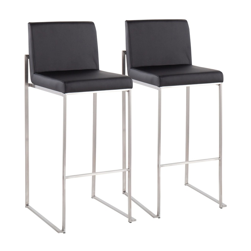 Fuji High Back Barstool, Set of 2, Stainless Steel – Contemporary – Bar Stools And Counter Stools – by LumiSource-B30-FUJIHB SSBK2