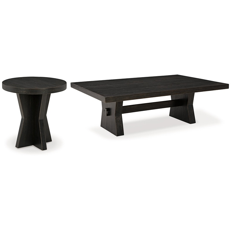 This occasional table package brings a rustic vibe to urban contemporary design. Its a modern approach to natural beauty, with an aged black finish. And the set's color palette is stunningly simple, allowing you to seamlessly coordinate these tables with y