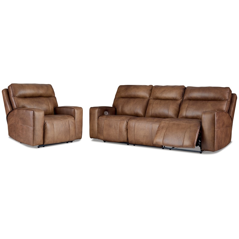 Masterful in its interpretation of modern luxury, this power reclining sofa and power recliner is sleekly tailored in top-grain leather. Its rich to the touch in tones of warm brown, inviting you to indulge in one-touch reclining. Design details polish off