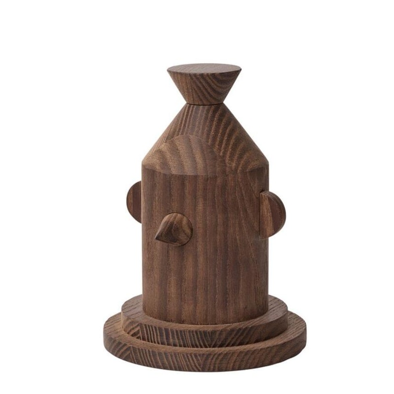 Jaime Hayon is known for bringing playfulness into everything he creates, no matter if it is art, furniture design or decorative objects. The GEO sculptures #1 and #2 are the Spanish designers first wooden sculptures produced by Fritz Hansen. They are an enchanting, tangible interpretation of the quirky drawings Hayon is known for. The two sculptures each tell their story. GEO #1 is tall, round and when tipping the tiny hat on top, the sculpture reveals a petite built-in vase fit for a single, small flower stem.
