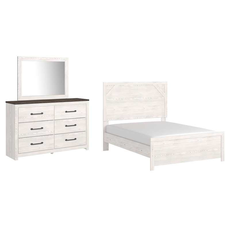 | Details | B1190B4: Includes headboard, footboard and rails, Made of engineered wood (MDF/particleboard) and decorative laminate, White rustic finish with replicated cedar grain, Foundation/box spring required, sold separately, Mattress not included, sold separately, Assembly required, Bed is compatible with an adjustable base, B1190B1: Includes dresser with mirror, Made of engineered wood (MDF/particleboard) and decorative laminate, White rustic finish with replicated cedar grain, Rustic gray planked replicated oak grain with authentic touch, 6 smooth-gliding drawers with faux linen lining, Large scale dark colored handles, Mirror attaches to back of dresser, Assembly required, |
