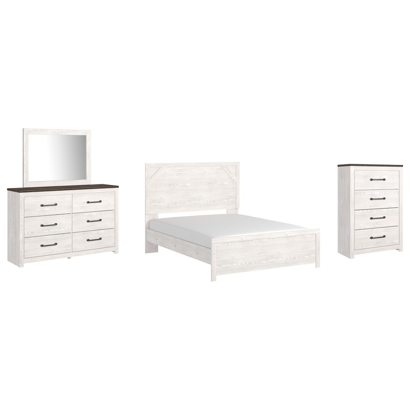 Details B1190B2: Includes headboard, footboard and rails, Made of engineered wood (MDF/particleboard) and decorative laminate, White rustic finish with replicated cedar grain, Foundation/box spring required, sold separately, Mattress not included, sold separately, Assembly required, Bed is compatible with an adjustable base, B1190B1: Includes dresser with mirror, Made of engineered wood (MDF/particleboard) and decorative laminate, White rustic finish with replicated cedar grain, Rustic gray planked replicated oak grain with authentic touch, 6 smooth-gliding drawers with faux linen lining, Large scale dark colored handles, Mirror attaches to back of dresser, Assembly required, B1190-44: Made of engineered wood (MDF/particleboard), and decorative laminate, White rustic finish with replicated cedar grain, Rustic gray planked replicated oak grain with authentic touch, 4 smooth-gliding drawers with faux linen lining, Large scale dark colored handles, Safety is a top priority, clothing storage units are designed to meet the most current standard for stability, ASTM F 2057 (ASTM International), Drawers extend out to accommodate maximum access to drawer interior while maintaining safety, Assembly required,