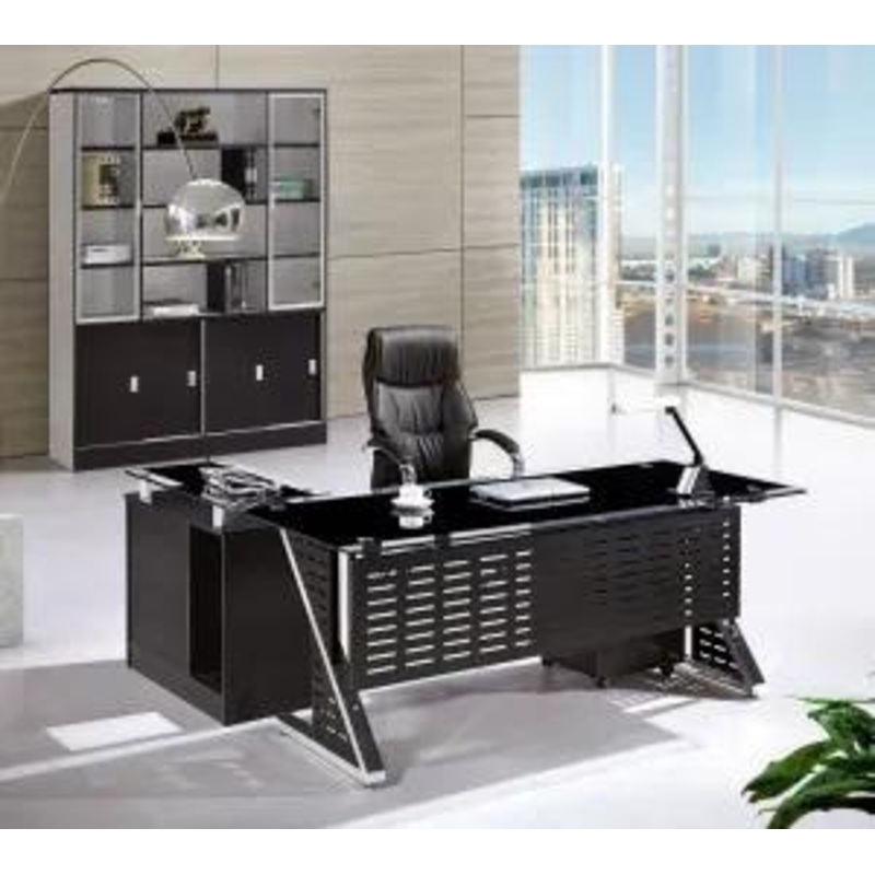 Type:Office FurnitureGeneral Use:Commercial FurnitureSize:W1800*D850*H750mmMaterial:Top grade tempered glass and MDF wood veneer,High quality hardware accessories, Components Description:1. Table Top: tempered glass2. Front panel;3. Pedestal;4. Design: Mod