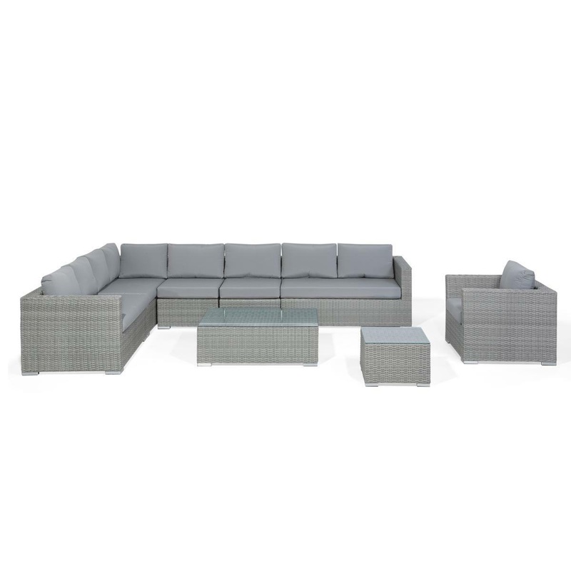 Turn your backyard into a comfortable lounge with this stylish garden set. All modular pieces are easily movable for the desired arrangement. Themetal frames are covered with durable synthetic rattan and low seating, back-supporting cushions add extra comfort. Modern design with sleek lines and an attractive colour scheme provide a luxury feel. An ultimate garden set with ample seating for everyone to enjoy your outdoor living space.