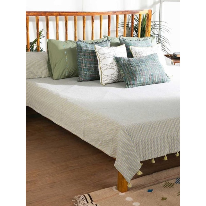 Grey Yellow Code Shadow Woven Cotton Double Bedcover